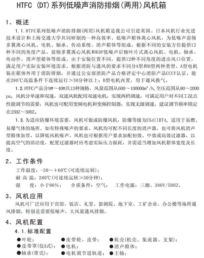 · 一、HTFC(DT)-I、II、V 系列低噪聲消防排煙(兩用)風機箱